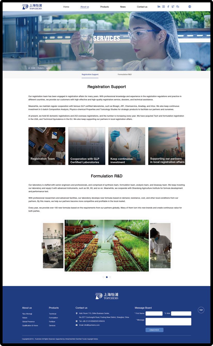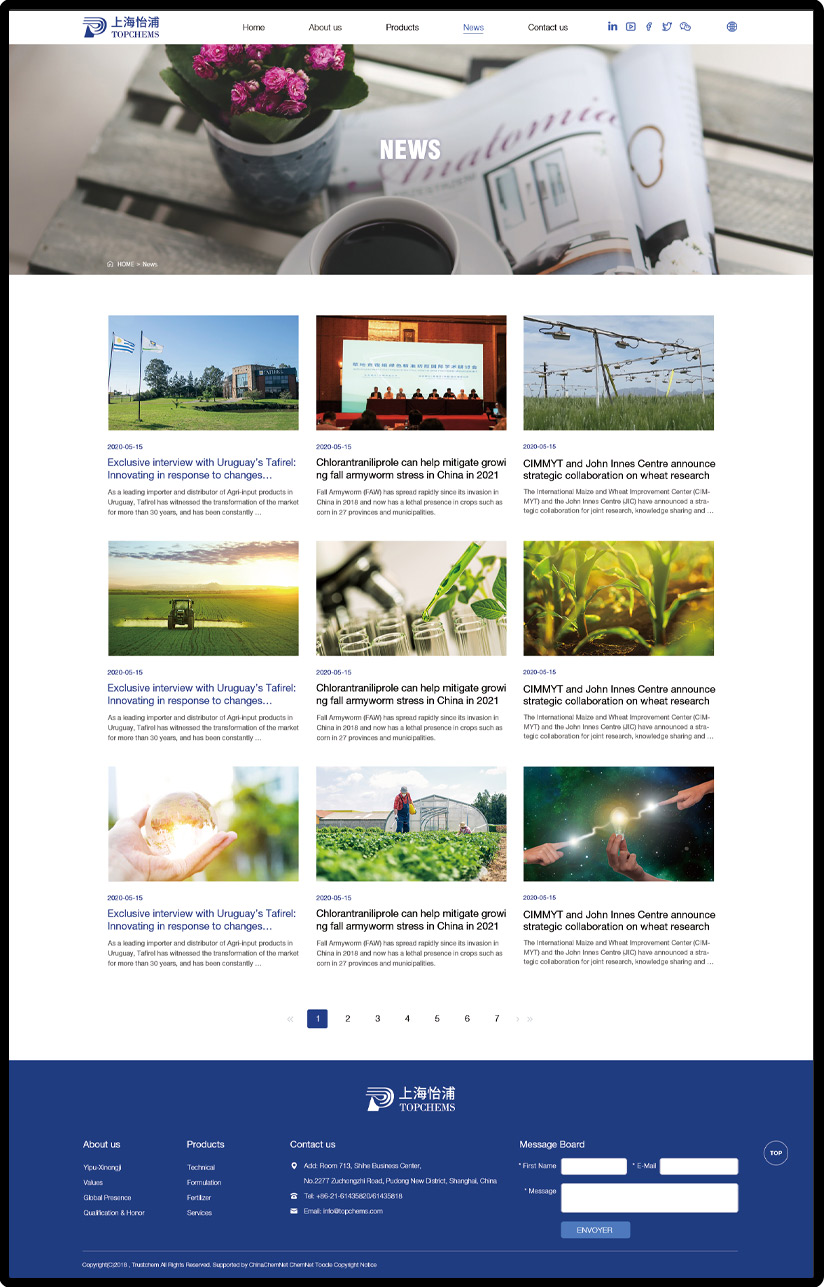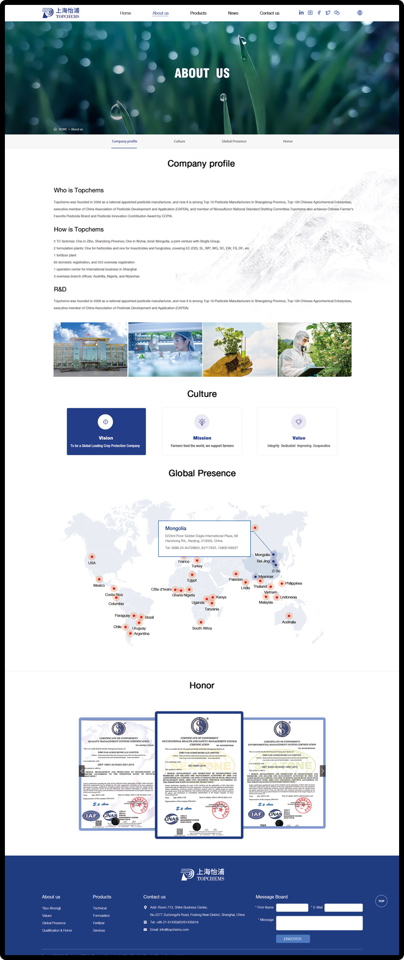 Shanghai Topchems was founded in 2009 as a national appointed pesticide manufacturer, and now it is among Top 100 Chinese Agrochemical Enterprises, the executive member of China Association of Pesticide Development & Application (CAPDA)