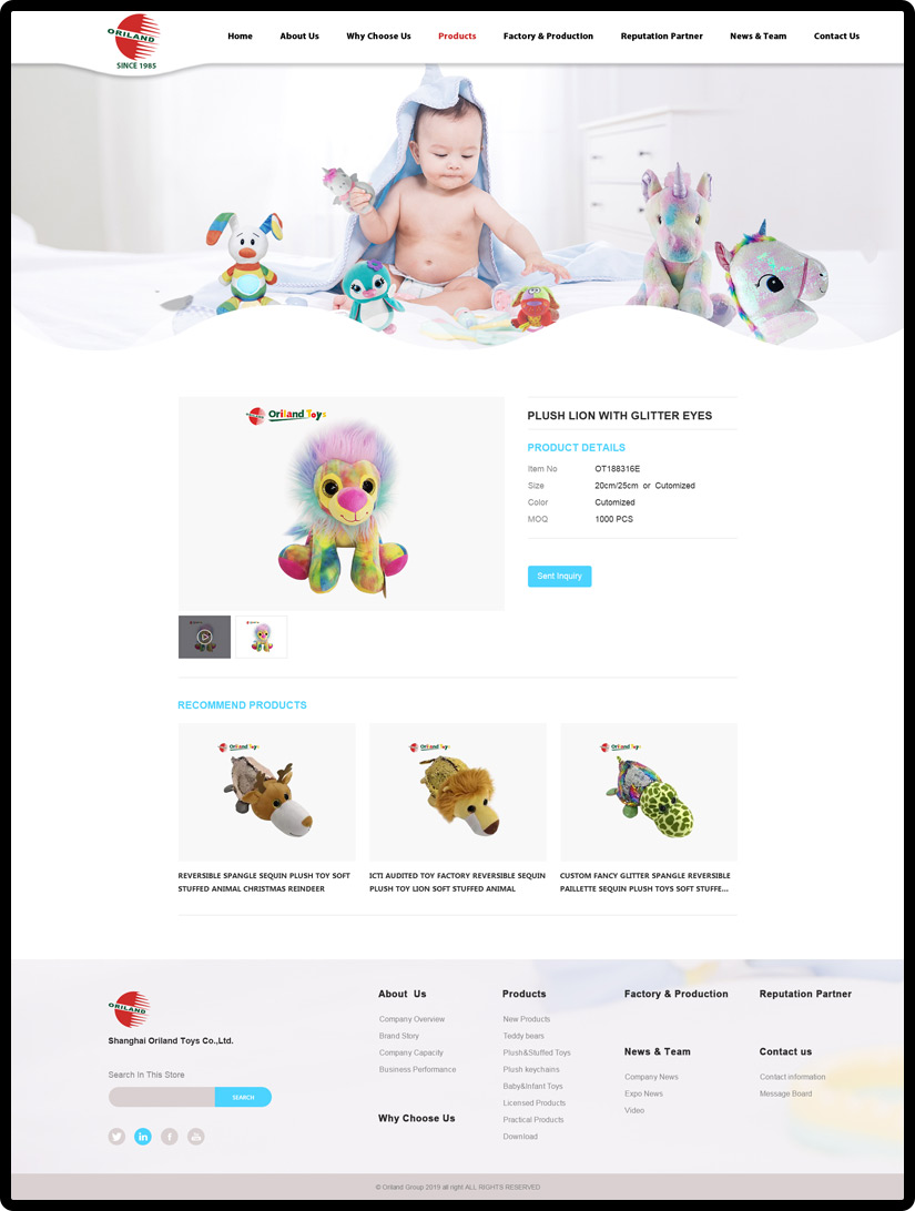 Established in 1985, ORILAND has full experience & focus on plush toys until now and is one of the Top 10 golden suppliers of plush toys in China.